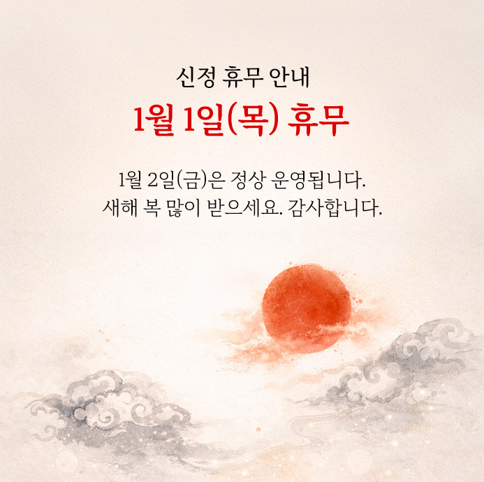 2025년 12월 25일(목) 크리스마스  2026년 01월 01일(목) 신정 휴무 안내 드립니다.